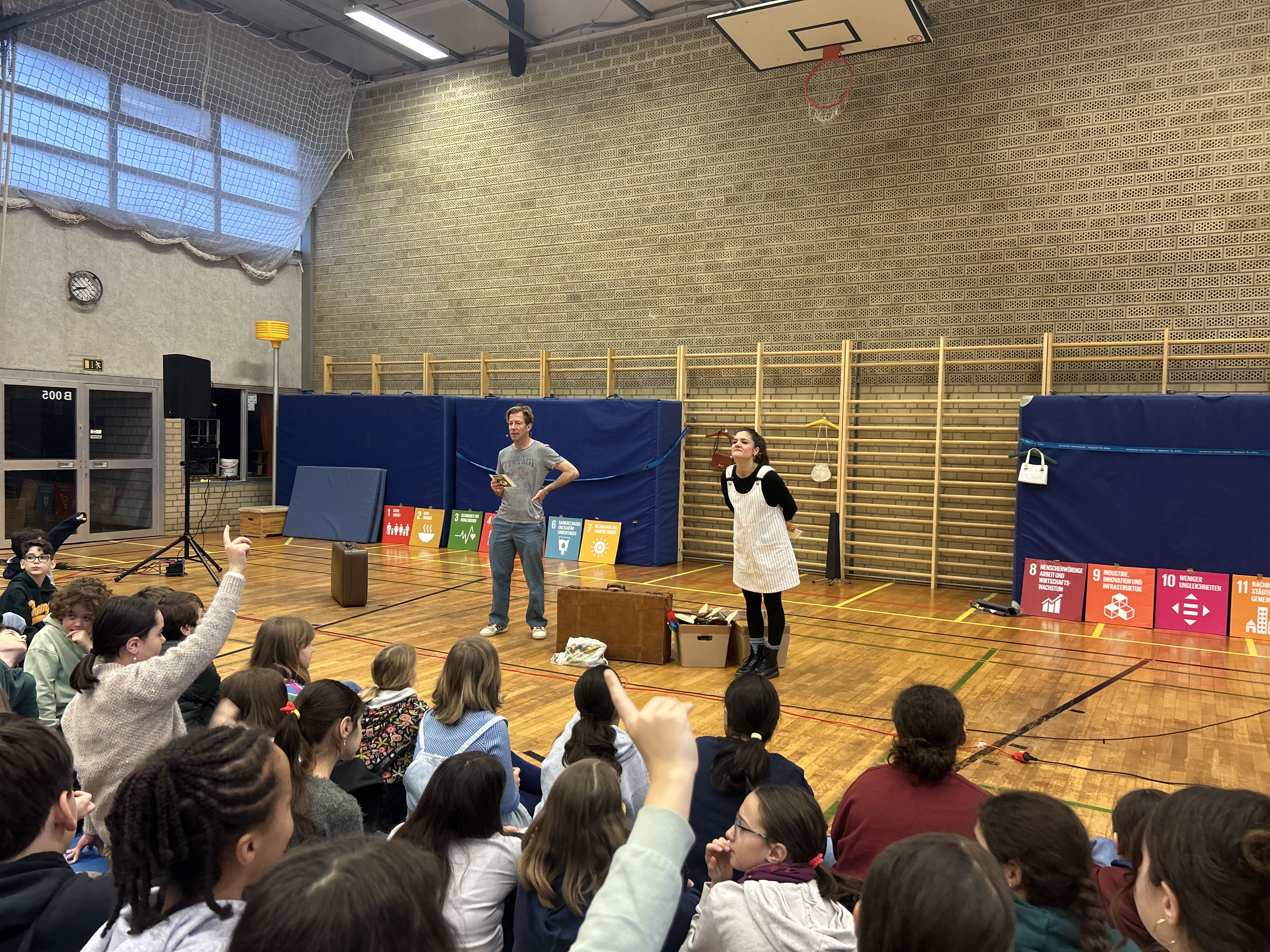 Ein besonderes Highlight bildete anschließend die Aufführung „Fundus 17“ der GORILLA Theatergruppe. In eindrucksvoller und zugleich altersgerechter Weise setzte sich das Stück mit den 17 Nachhaltigkeitszielen auseinander und regte zum Nachdenken, Mitfühlen und Mitgestalten an.